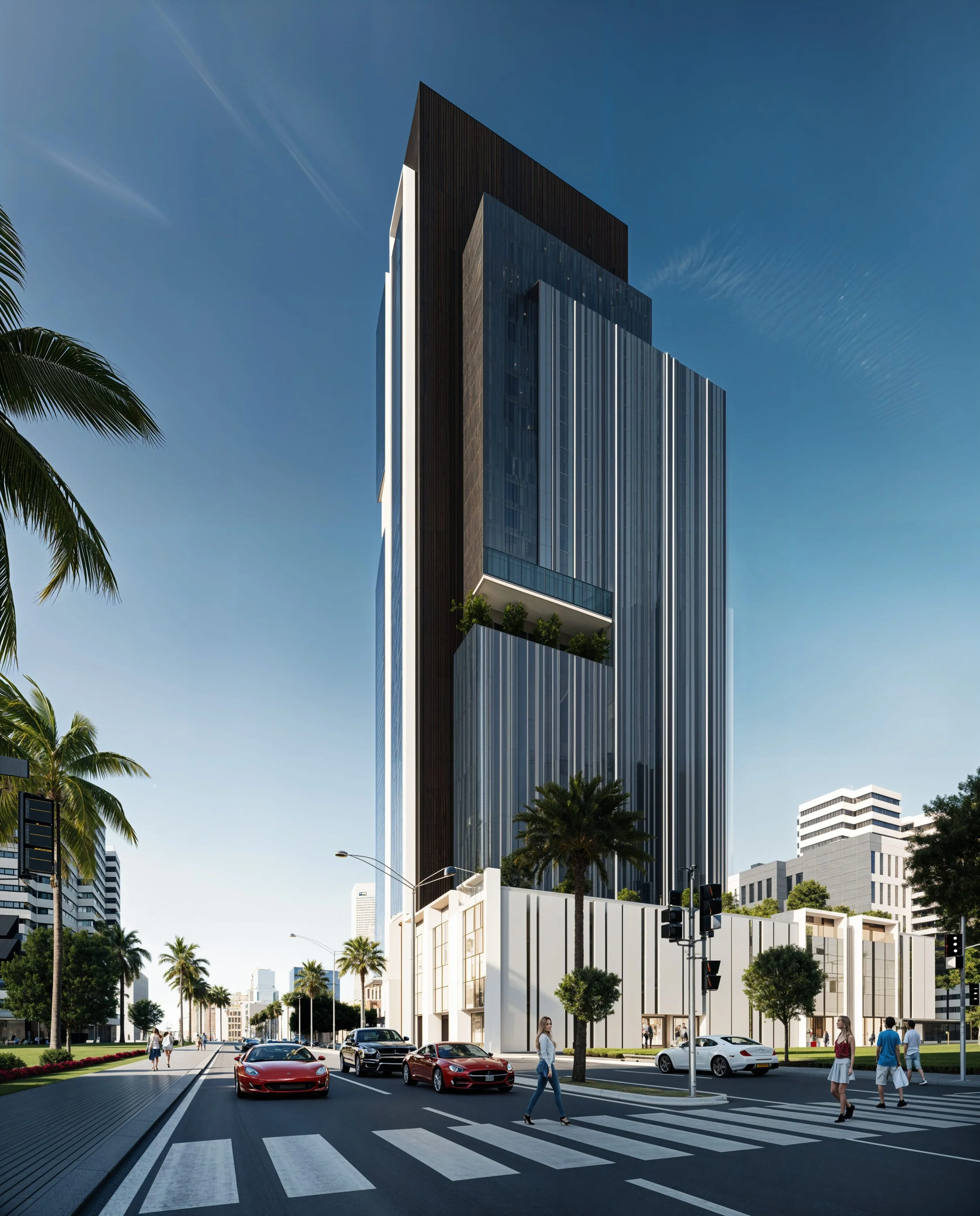 Standing as a 37-story masterpiece in the heart of Doha, 37 Tower masterfully merges Qatar’s rich cultural heritage with the pinnacle of contemporary urban sophistication. The architectural design draws direct inspiration from traditional Qatari facades, utilizing striking minimalist vertical elements that create a rhythmic play of light while serving as functional solar shading to enhance energy efficiency. As a premier mixed-use landmark, the tower integrates luxury residential living, state-of-the-art office spaces, and high-end retail, all unified by a commitment to sustainable design and environmental harmony. This is most visible in its elevated green terraces, which provide a lush, natural sanctuary amidst the glass and steel of the city. Ultimately, Lusail Tower stands as a beacon of modern Doha, offering a unique vertical lifestyle that is as environmentally conscious as it is aesthetically profound.